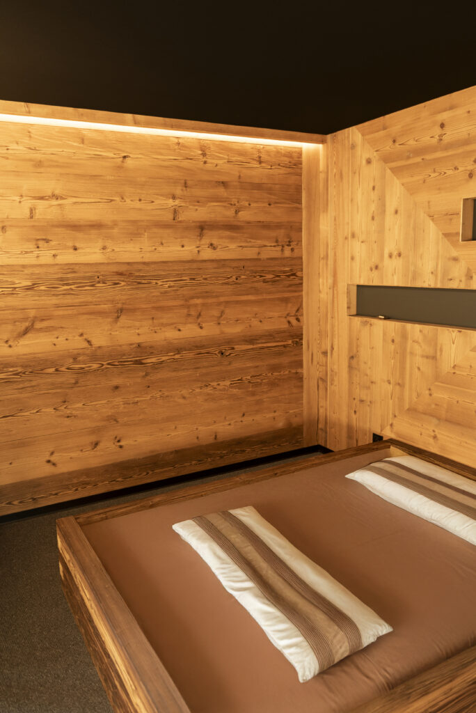 Le travail de brossage accentue le relief naturel de la matière, tandis que l’étuvage homogénéise la teinte et apporte une chaleur visuelle élégante et authentique. Le parement crée ainsi une ambiance enveloppante, à la fois brute et raffinée, idéale pour des intérieurs de caractère, qu’ils soient contemporains, alpins ou résolument architecturaux.
